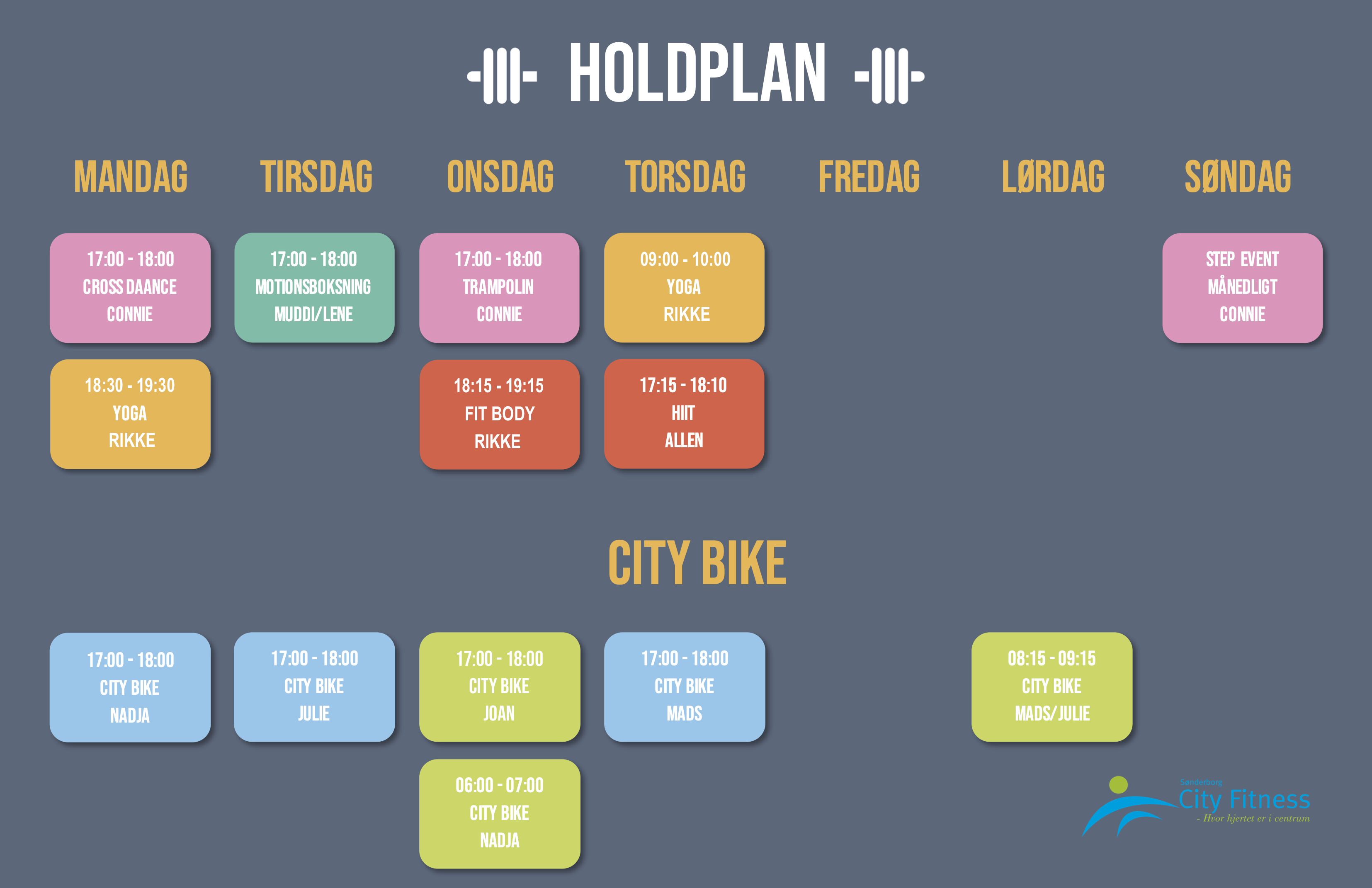 Træd dig til toppen med vores City Bike-hold! Her får du chancen for at presse dig selv på en stationær cykel, mens du bliver guidet gennem bakker, sprint og flade strækninger. Med motiverende musik og en instruktør, der holder dig på sporet, vil du hurtigt mærke effekten på både kondition og figur. Uanset om du er ny eller erfaren, er City Bike den perfekte måde at forbedre dit kredsløb og forbrænde kalorier.